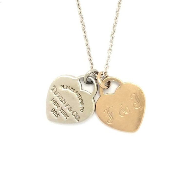 5. ティファニー Tiffany&Co. ダブルハート ネックレス 42cm SV925 K18 シルバー リターントゥ コンビ イニシャル【中古】