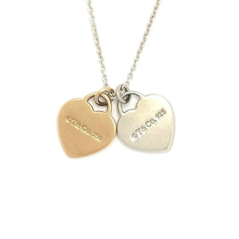 3. ティファニー Tiffany&Co. ダブルハート ネックレス 42cm SV925 K18 シルバー リターントゥ コンビ イニシャル【中古】
