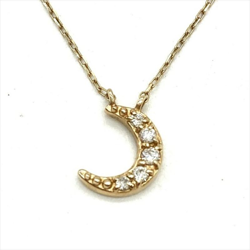 4. エテ ete ネックレス ダイヤモンド K10 1.2g ゴールド ムーンモチーフ 月 アジャスター付き レディース【中古】