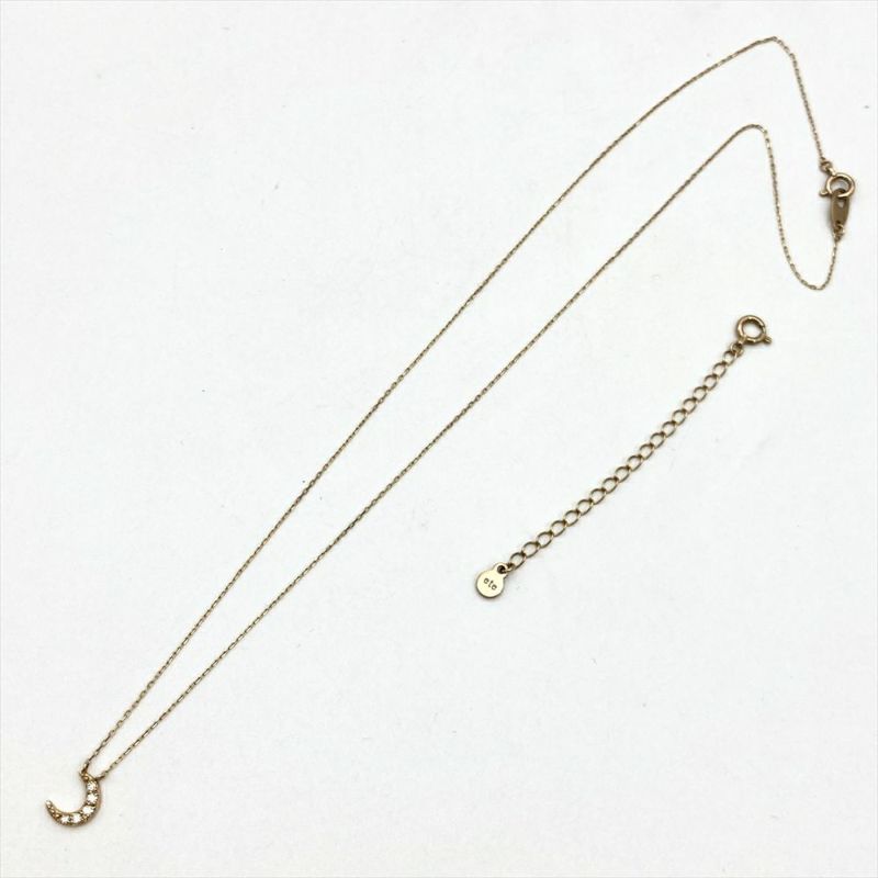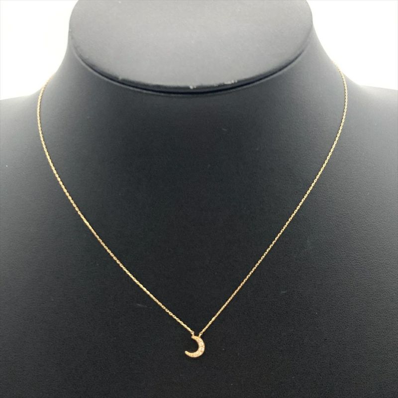 3. エテ ete ネックレス ダイヤモンド K10 1.2g ゴールド ムーンモチーフ 月 アジャスター付き レディース【中古】