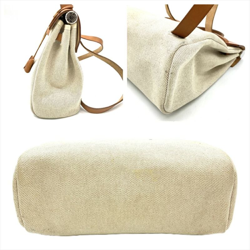 4. エルメス HERMES エールバッグ アド リュック キャンバス レザー □F刻印 ナチュラル シルバー金具 バックパック レディース【中古】