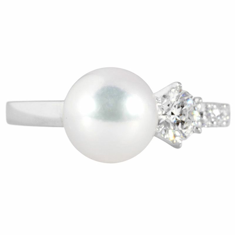 ミキモト MIKIMOTO パール リング 指輪 アコヤ真珠g Pt950 ダイヤモンド 0.30ct【中古】