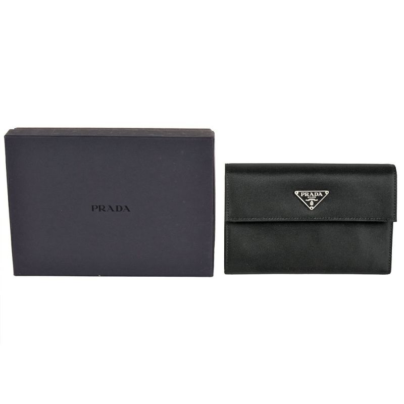 3. プラダ PRADA テスート 二つ折り財布 ナイロン レザー M510 ブラック【中古】