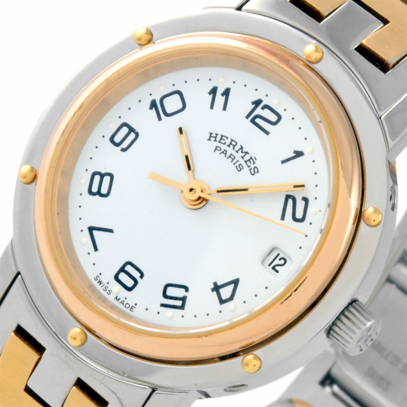 4. エルメス HERMES CL3.240 クリッパー 腕時計 ホワイト文字盤 レディース【中古】