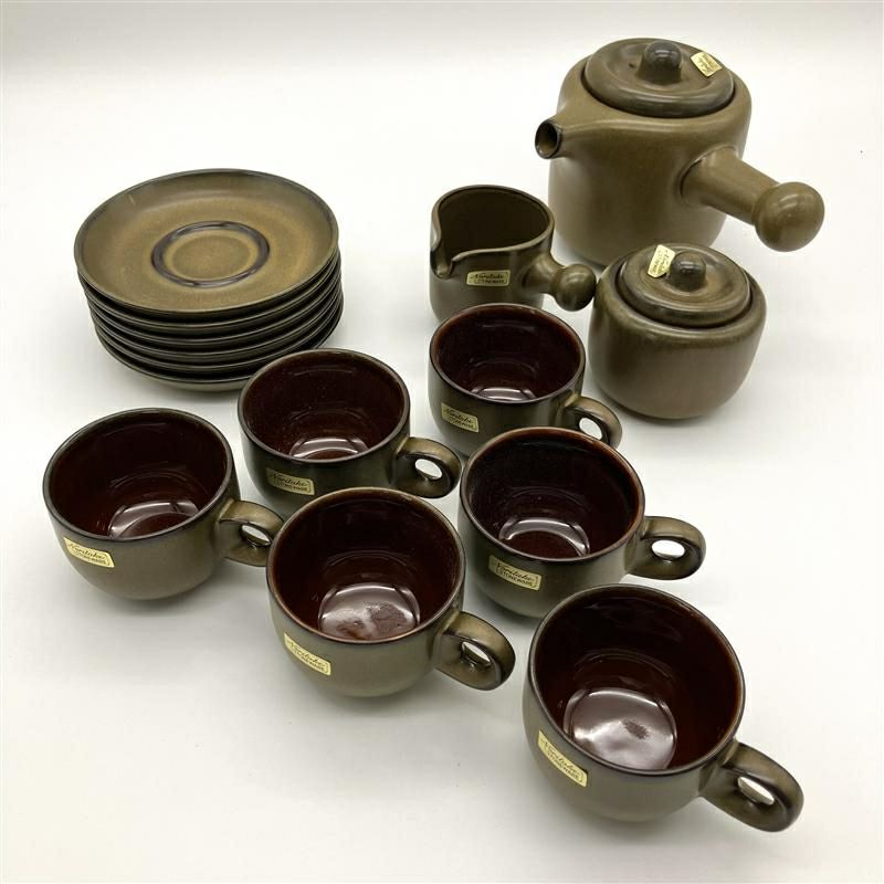 ノリタケ NORITAKE フォークストーン カップ&ソーサー 6客 クリマー シュガーポット ティーポットセット ブラウン【中古】