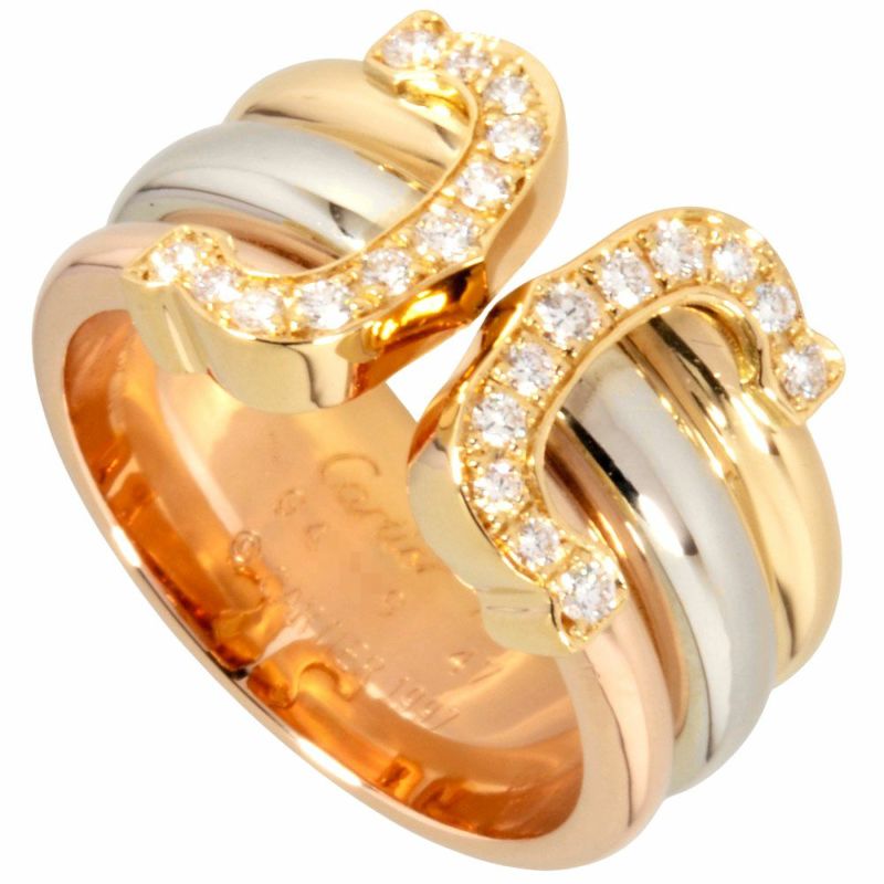 3. カルティエ Cartier 2C リング 指輪 ダイヤモンド #47 K18YG 7.7g K18WG K18PG スリーカラー【中古】