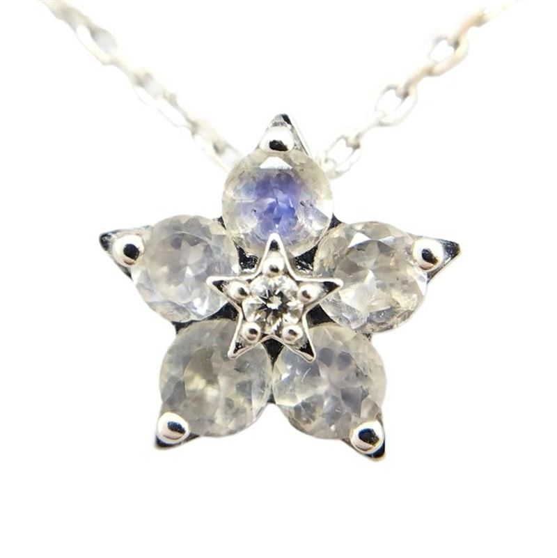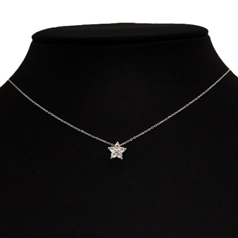 4. スタージュエリー STAR JEWELRY 星モチーフ 5Pラインストーン ネックレス ダイヤモンド 0.05ct K10WG 1.1g【中古】