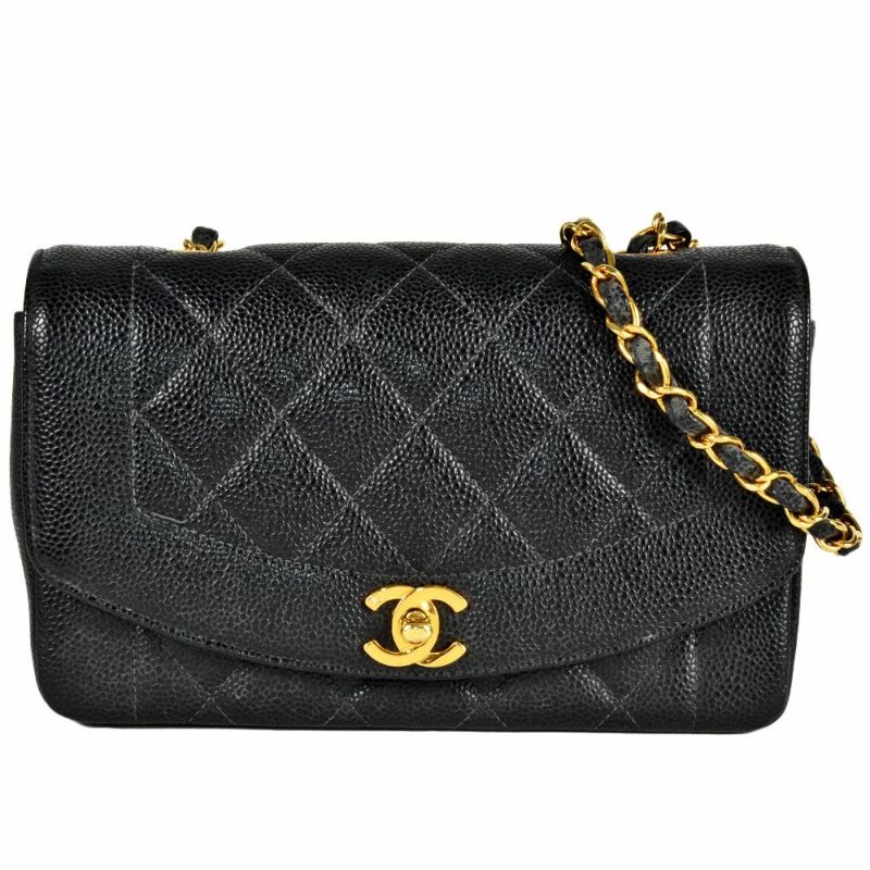 3. シャネル CHANEL ダイアナ 22 シングルフラップ チェーン ショルダーバッグ キャビアスキン A01164 ブラック ゴールド金具 ココマーク マトラッセ【中古】