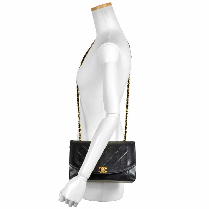 3. シャネル CHANEL マトラッセ ダイアナ チェーン ショルダーバッグ ラムスキン A01165 ブラック ゴールド金具 7桁1番台 ココマーク【中古】