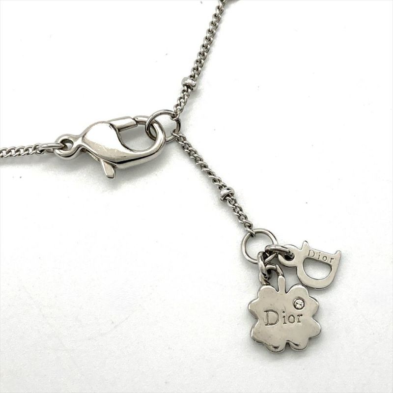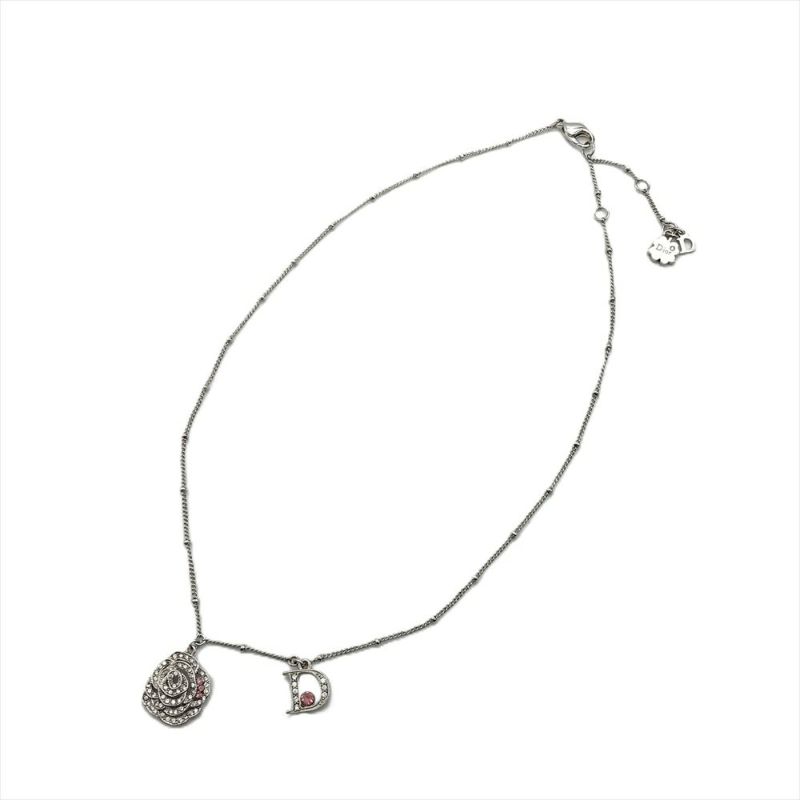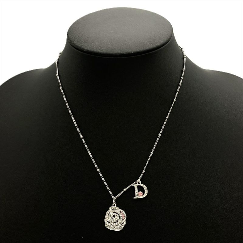 4. ディオール Dior フラワーモチーフ ネックレス メタル ラインストーン シルバー ピンク 花 バラ レディース【中古】