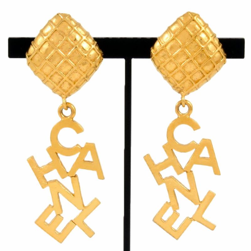 3. シャネル CHANEL マトラッセ ロゴ スイング イヤリング GPg ゴールド レディース【中古】