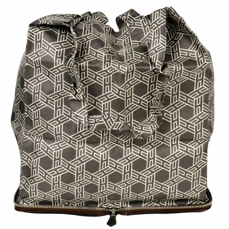 3. エルメス HERMES シルキーポップ エコバッグ ダークブラウン Hロゴ ブッフルスキッパー シルク【中古】