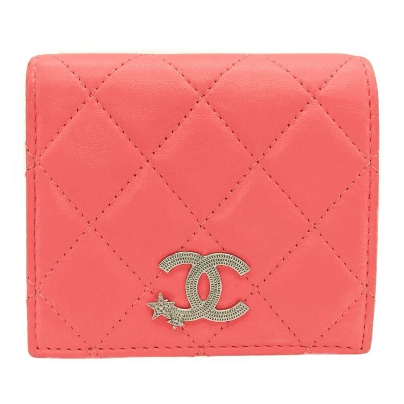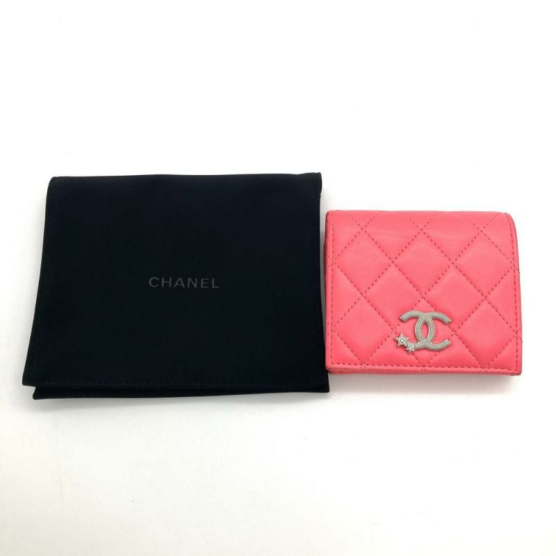 3. シャネル CHANEL マトラッセ ココマーク スター スモールウォレット 二つ折り財布 ラムスキン AP3726 ピンク シルバー金具【中古】