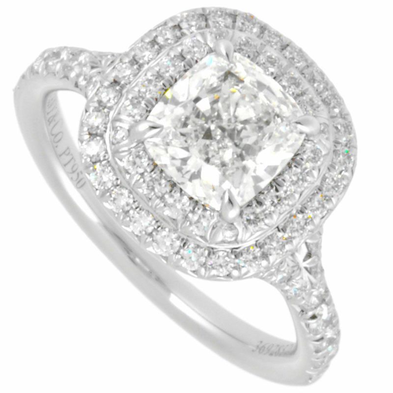 - ティファニー Tiffany&Co. ソレスト クッション カット ダブル ハロー リング 指輪 ダイヤモンド 0.96ct 約6号 Pt950 4.9g レディース【中古】