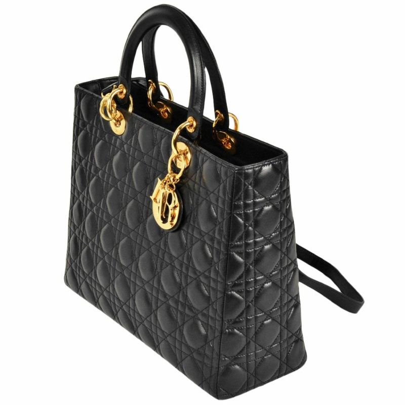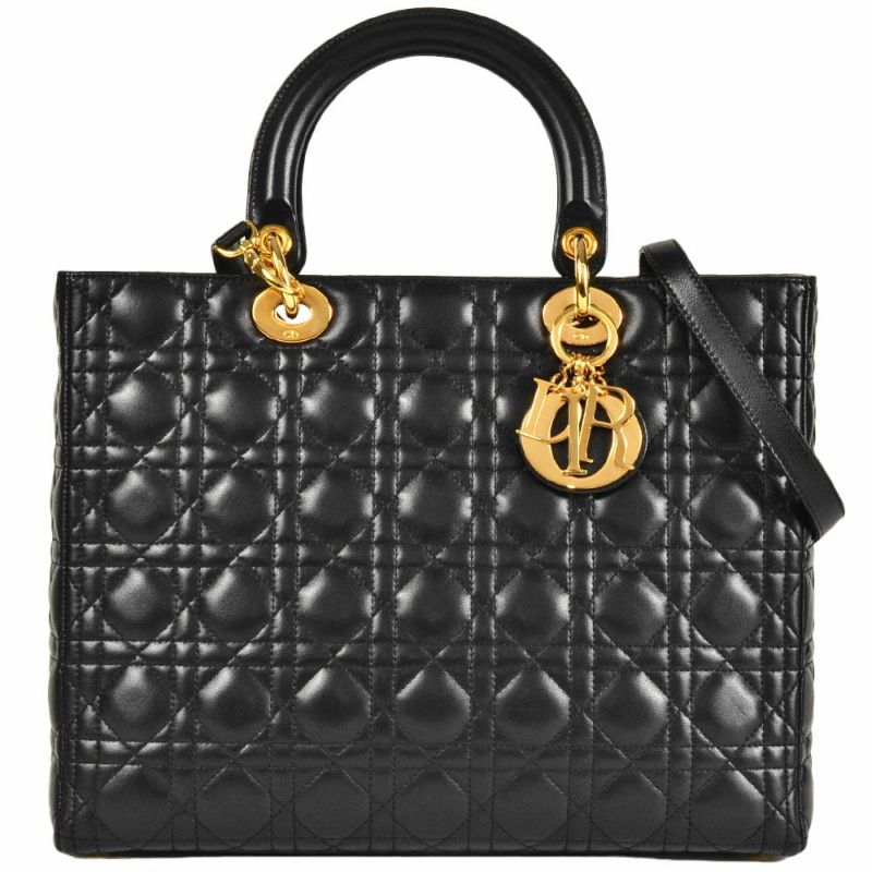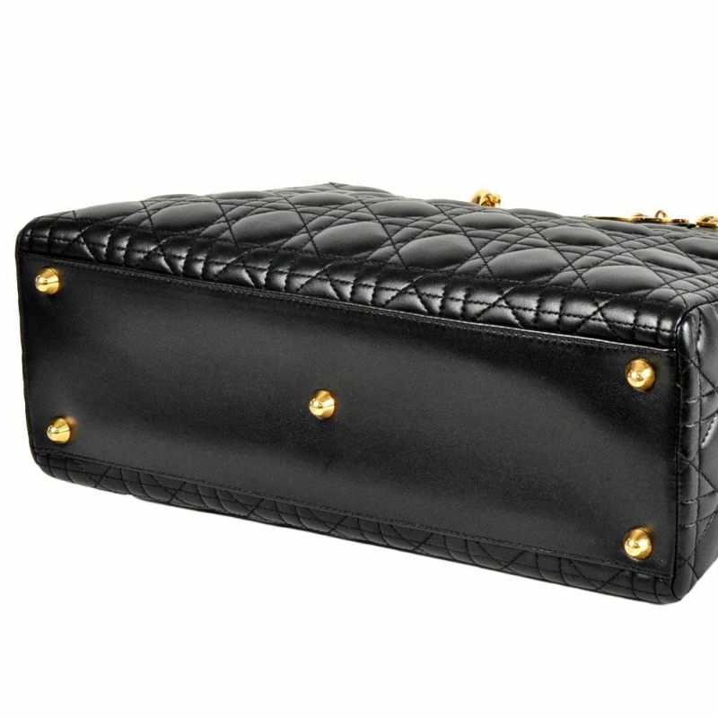 3. ディオール Dior レディディオール カナージュ ハンドバッグ 2WAY ラムスキン CAL44560 ブラック ゴールド金具【中古】