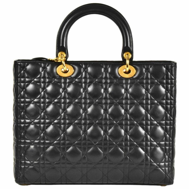 ディオール Dior レディディオール カナージュ ハンドバッグ 2WAY ラムスキン CAL44560 ブラック ゴールド金具【中古】