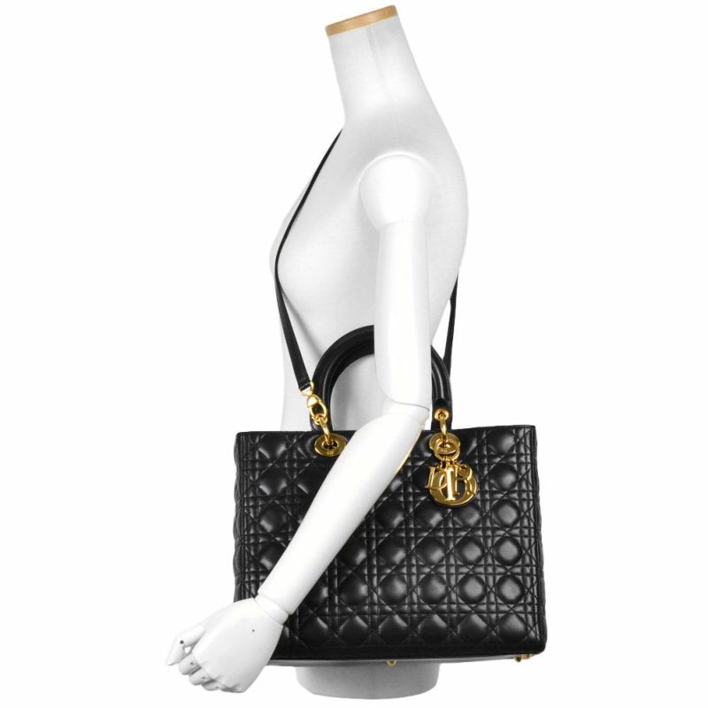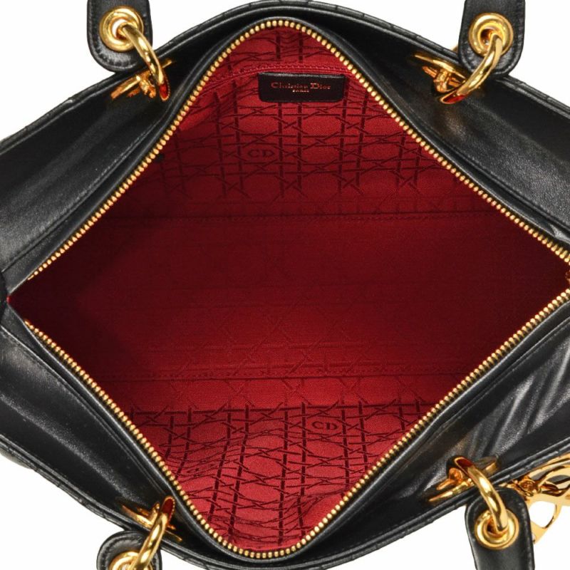 5. ディオール Dior レディディオール カナージュ ハンドバッグ 2WAY ラムスキン CAL44560 ブラック ゴールド金具【中古】