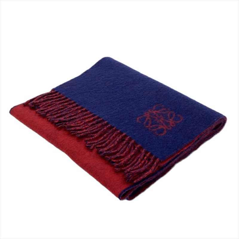 ロエベ LOEWE マフラー ウール アンゴラ ネイビー レッド バイカラー アナグラム【中古】