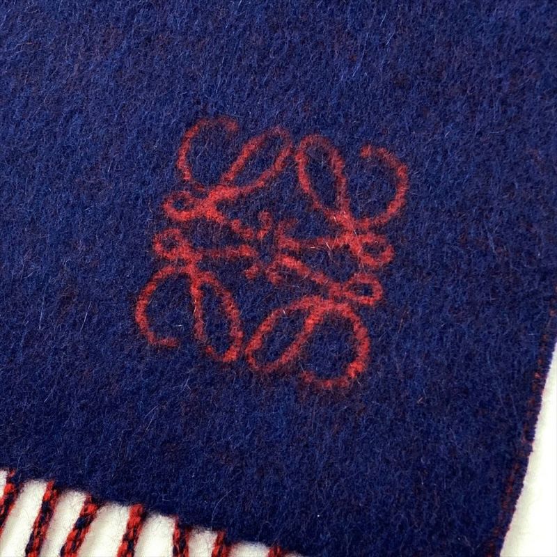 4. ロエベ LOEWE マフラー ウール アンゴラ ネイビー レッド バイカラー アナグラム【中古】