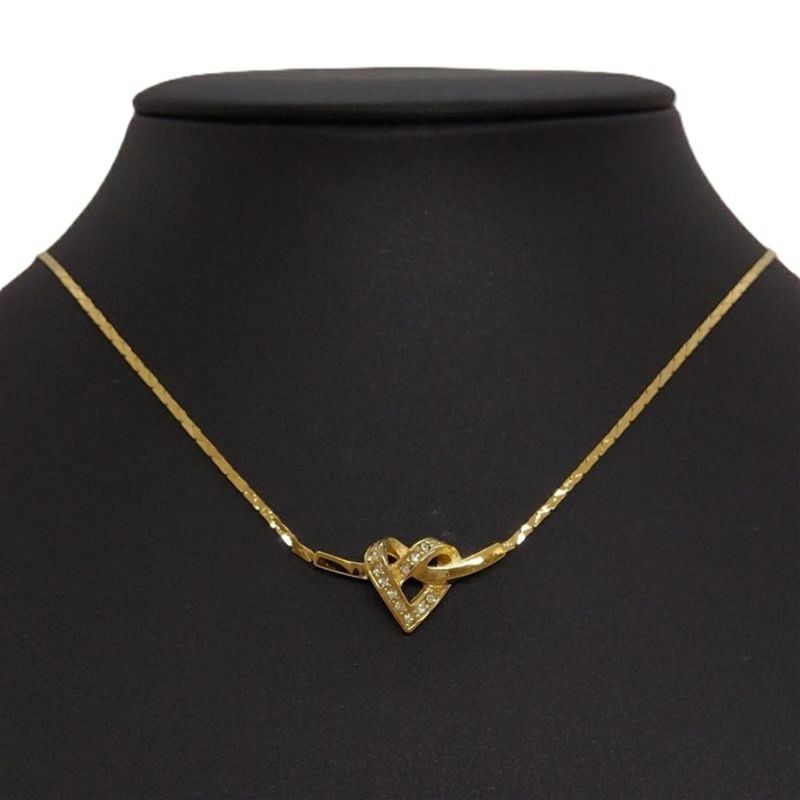 3. クリスチャンディオール Christian Dior ハートモチーフ ラインストーン GP ネックレス ゴールド ヴィンテージ【中古】