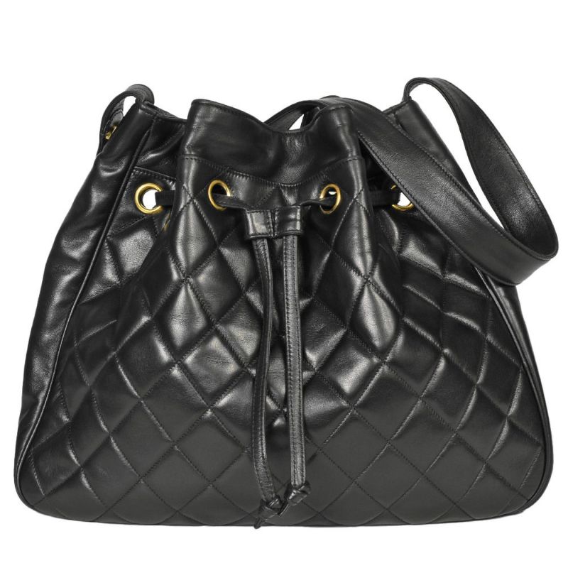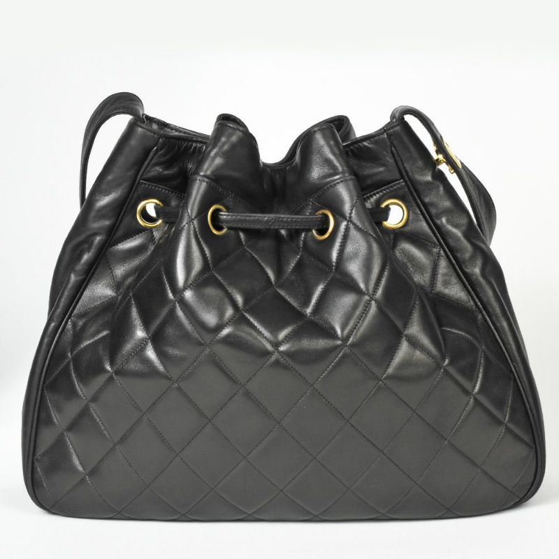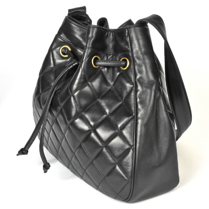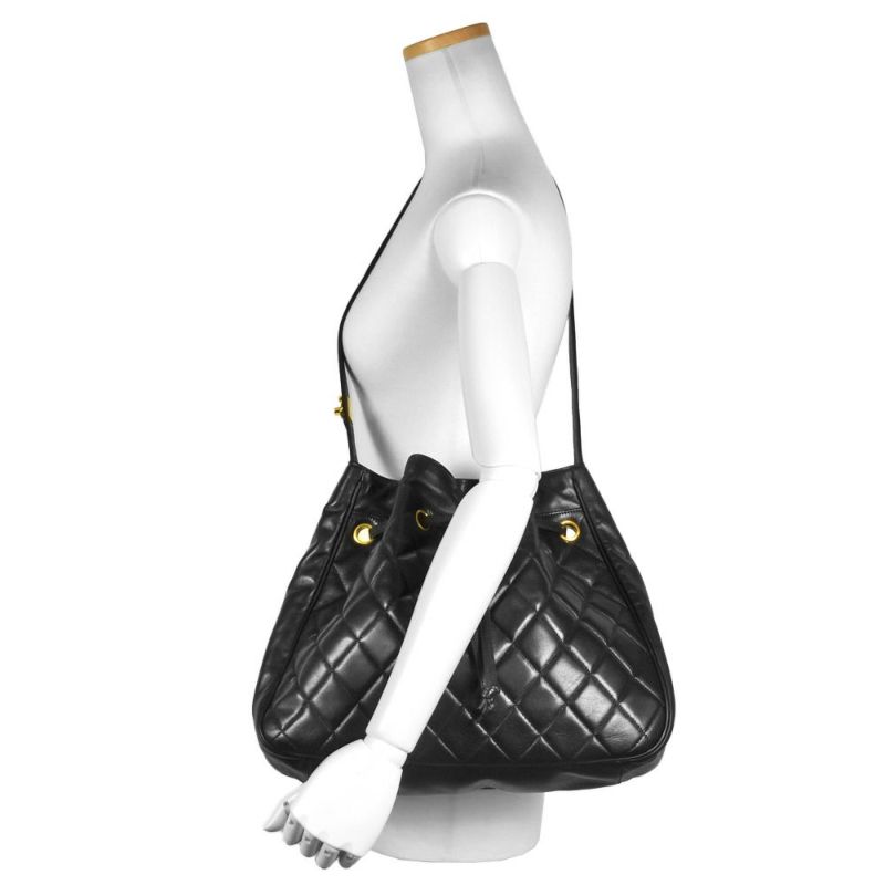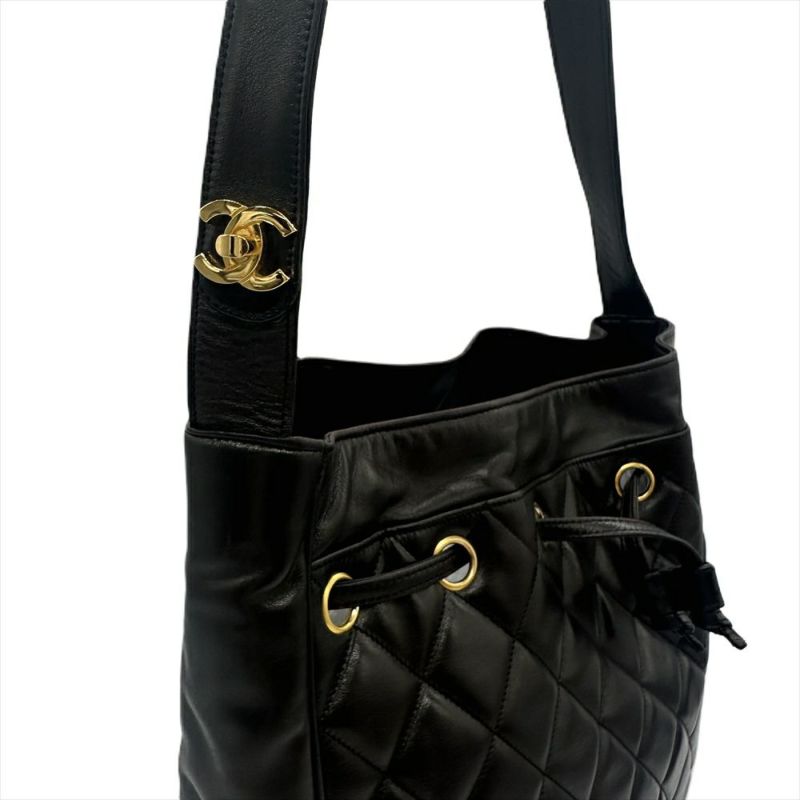 3. シャネル CHANEL ココマーク マトラッセ 巾着 トートバッグ ラムスキン ブラック ショルダーバッグ【中古】
