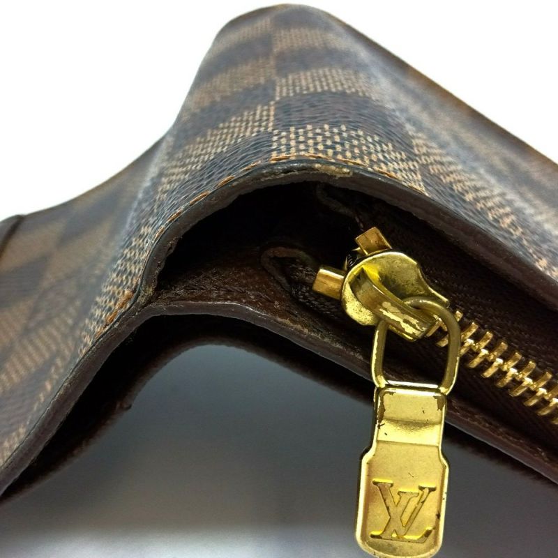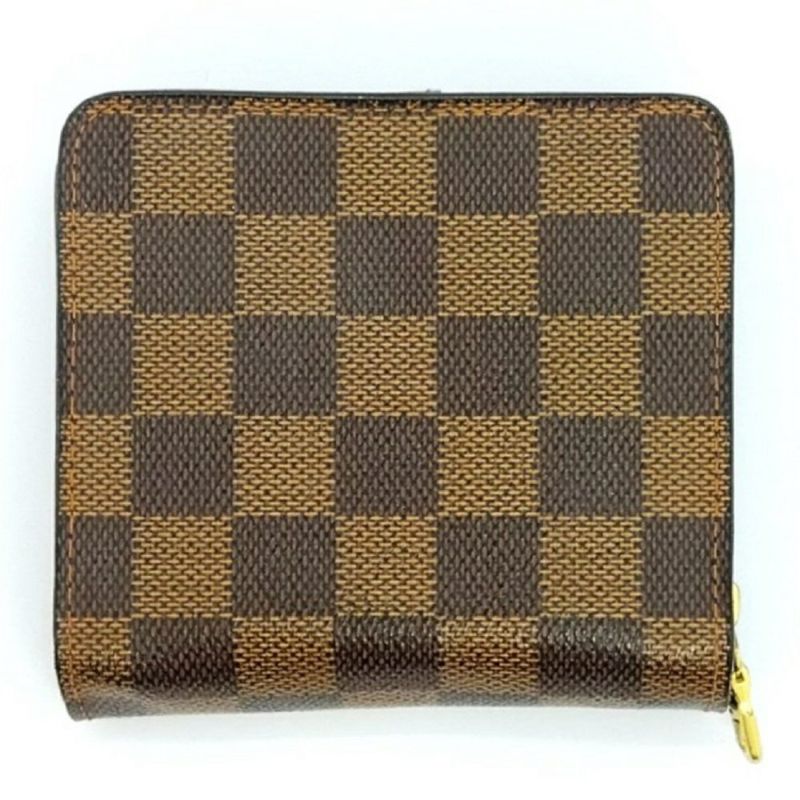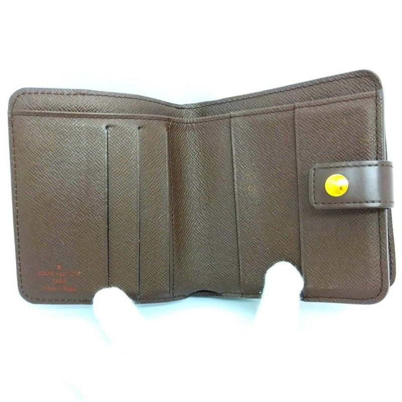 3. ルイヴィトン LOUIS VUITTON コンパクトジップ 二つ折り財布 ダミエ エベヌ N61668 ブラウン ゴールド金具 CA0065【中古】