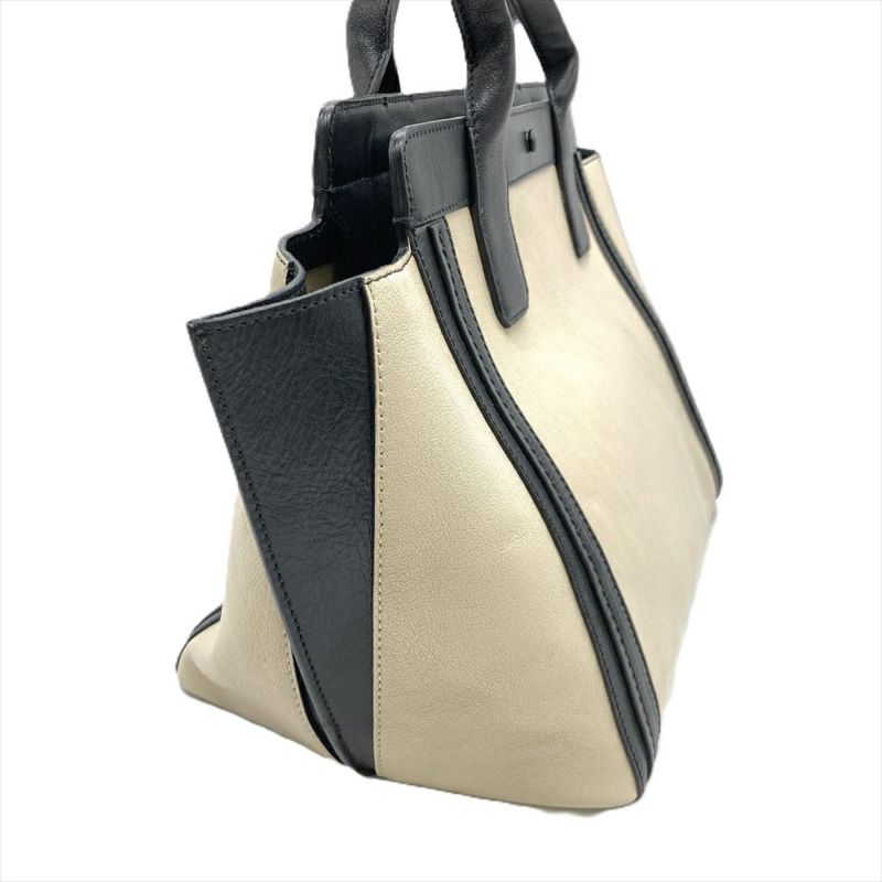 3. クロエ Chloe アリソン ALYSON トートバッグ カーフ ベージュ ゴールド金具 ブラック レディース【中古】