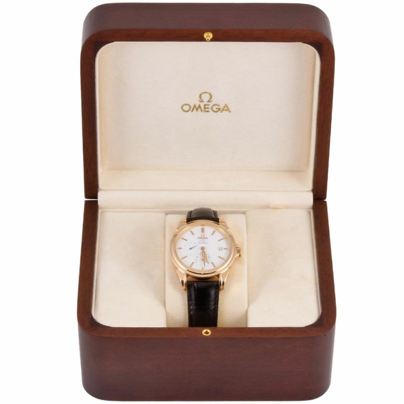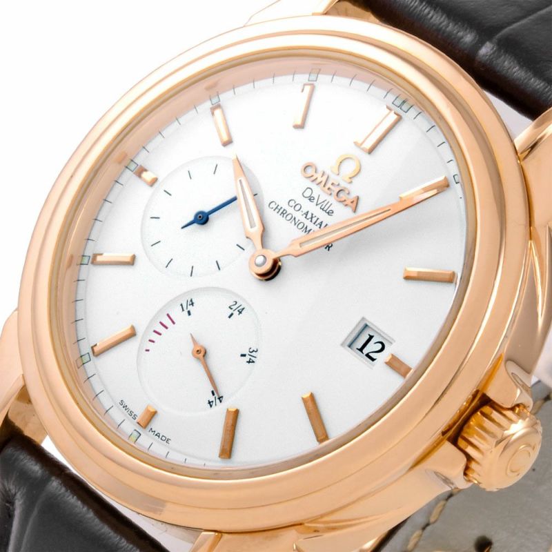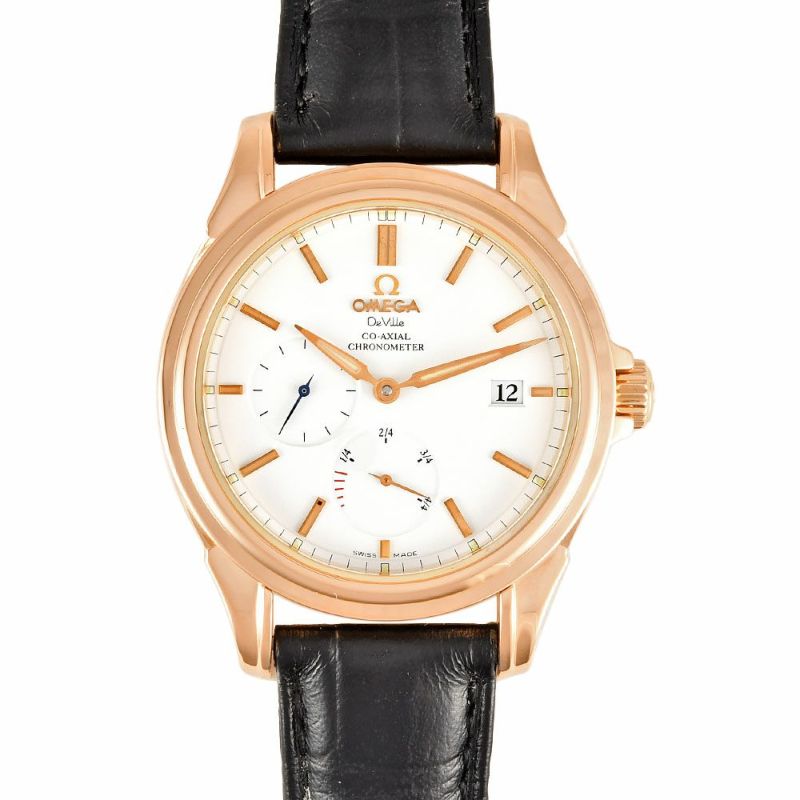 - オメガ OMEGA 4652.20.32 デヴィル コーアクシャル パワーリザーブ 腕時計 ホワイト文字盤 K18RG 金無垢 裏スケ メンズ【中古】