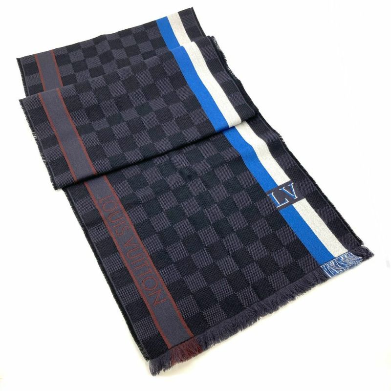 5. ルイヴィトン LOUIS VUITTON エシャルプ メサジェ ダミエ マフラー ウール 190cm M70339 アントラシット RT0137 メンズ【中古】