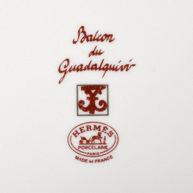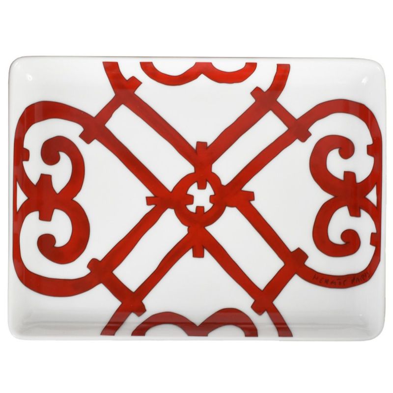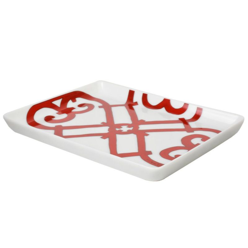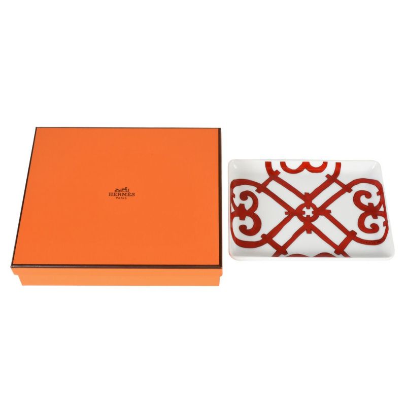 5. エルメス HERMES ガダルキヴィール スクエアプレート トレー 皿 陶器 ホワイト レッド【中古】