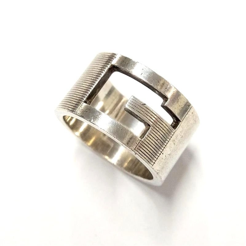 4. グッチ GUCCI ブランデッドG カットアウト ワイド リング 指輪 #16 SV925 12.2g シルバー【中古】