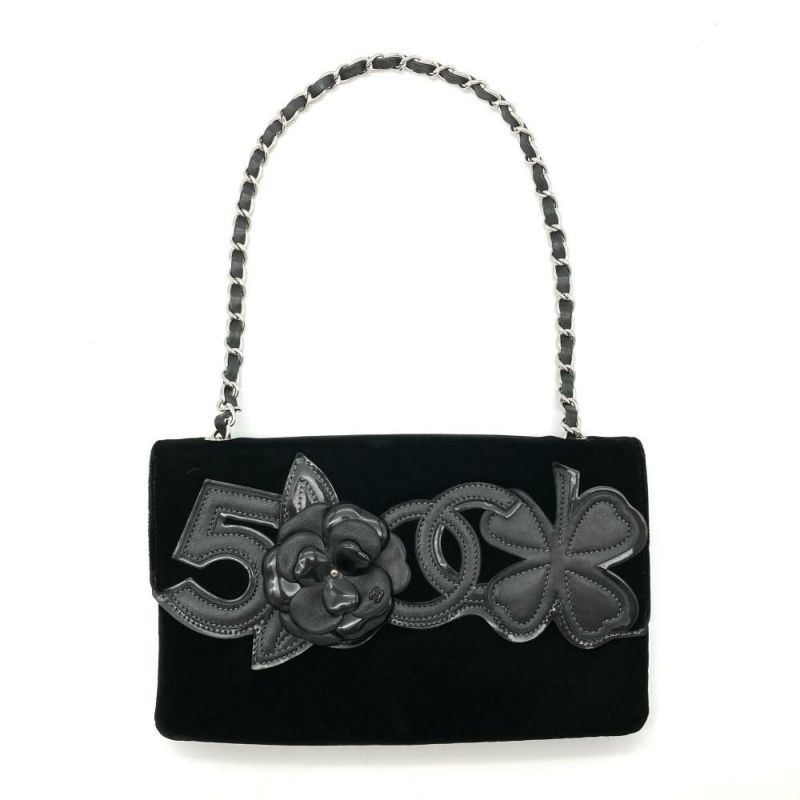 シャネル CHANEL カメリア No.5 クローバー ショルダーバッグ ベルベット ブラック ココマーク チェーンショルダー ベロア レディース【中古】