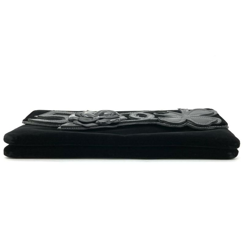 3. シャネル CHANEL カメリア No.5 クローバー ショルダーバッグ ベルベット ブラック ココマーク チェーンショルダー ベロア レディース【中古】