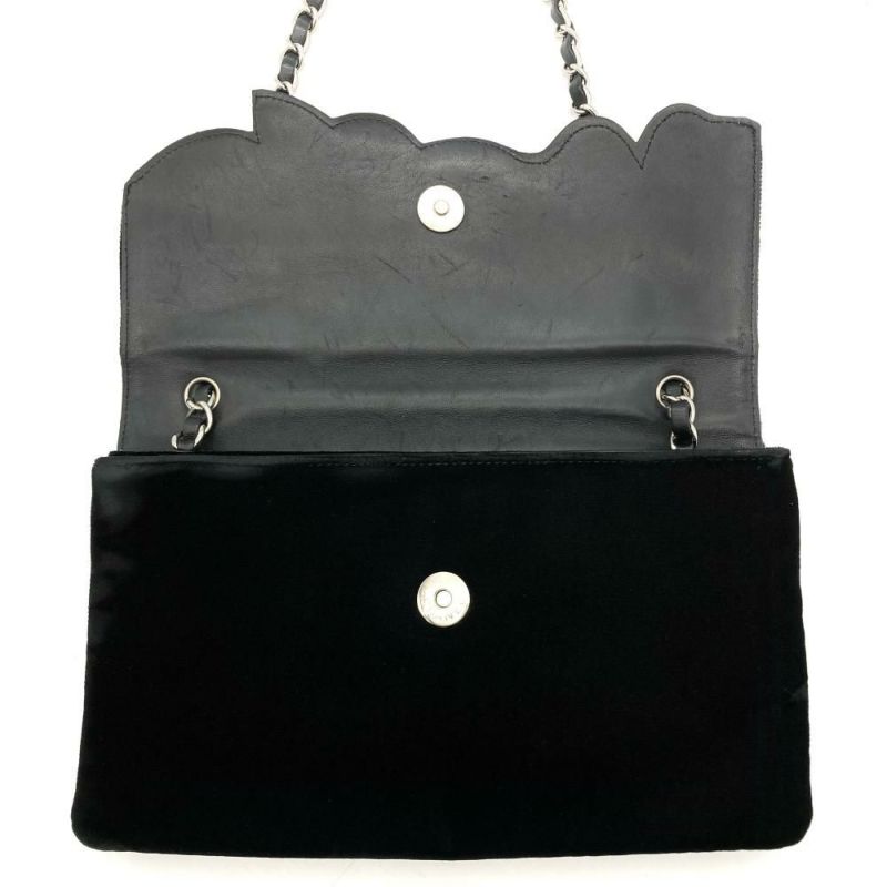 4. シャネル CHANEL カメリア No.5 クローバー ショルダーバッグ ベルベット ブラック ココマーク チェーンショルダー ベロア レディース【中古】