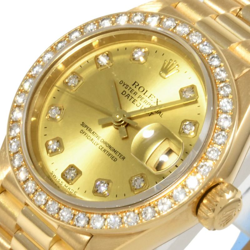 - ロレックス ROLEX 79138G デイトジャスト A番 腕時計 シャンパン文字盤 10Pダイヤ K18YG 金無垢 ダイヤベゼル レディース【中古】
