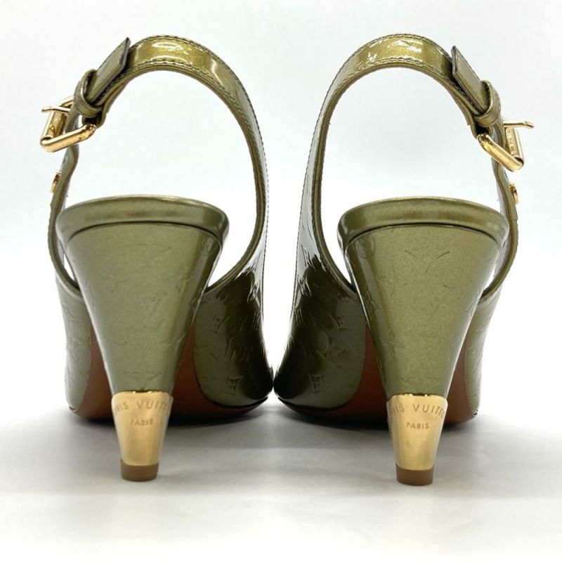 - ルイヴィトン LOUIS VUITTON アンクルストラップ付き オープントゥ サンダル モノグラム ヴェルニ MA0099 ヴェールブロンズ ヒール 約23.5cm レディース【中古】
