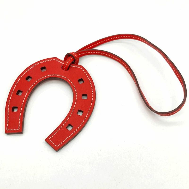 4. エルメス HERMES パドックシュバル チャーム レザー レッド 馬蹄【中古】