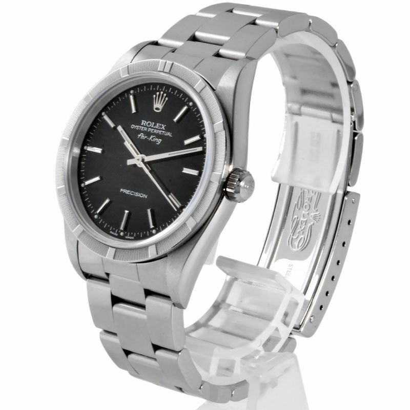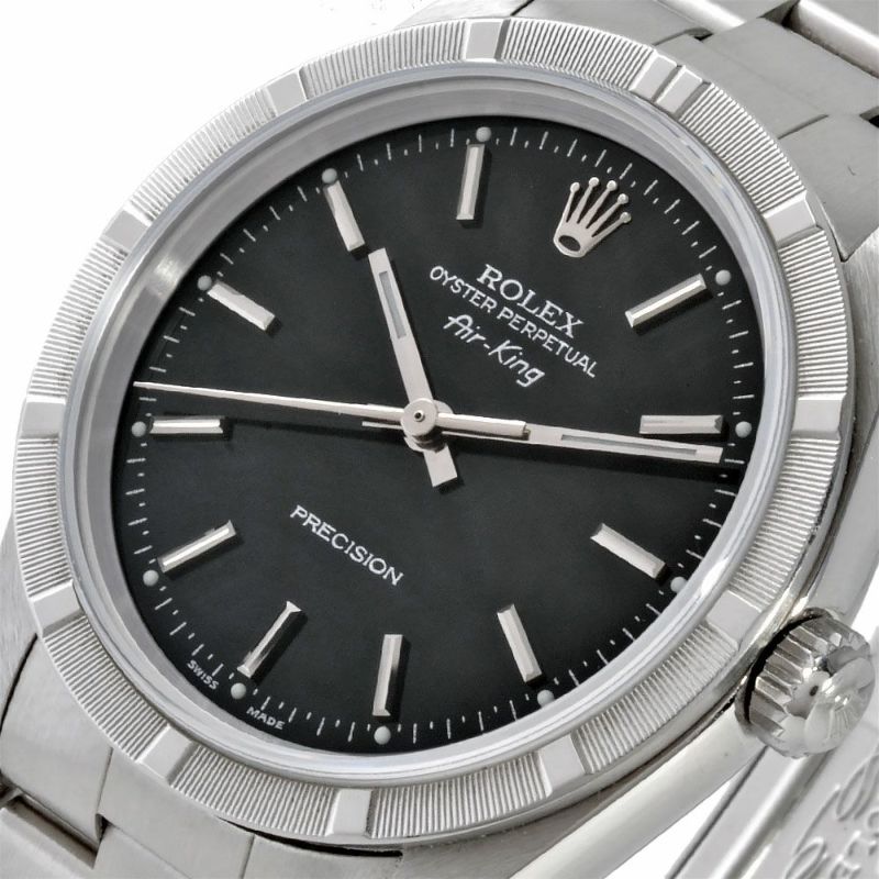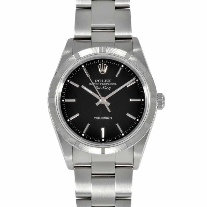- ロレックス ROLEX 14010M エアキング K番 腕時計 ブラック文字盤 SS エンジンターンドベゼル メンズ【中古】