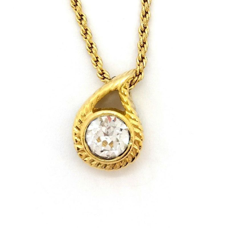 3. クリスチャンディオール Christian Dior ドロップモチーフ ネックレス ゴールド GP 1P ストーン GERMANY しずく【中古】