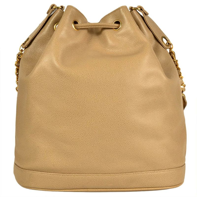 シャネル CHANEL ショルダーバッグ キャビアスキン ベージュ ゴールド金具 6桁3番台 ココマーク 巾着タイプ【中古】
