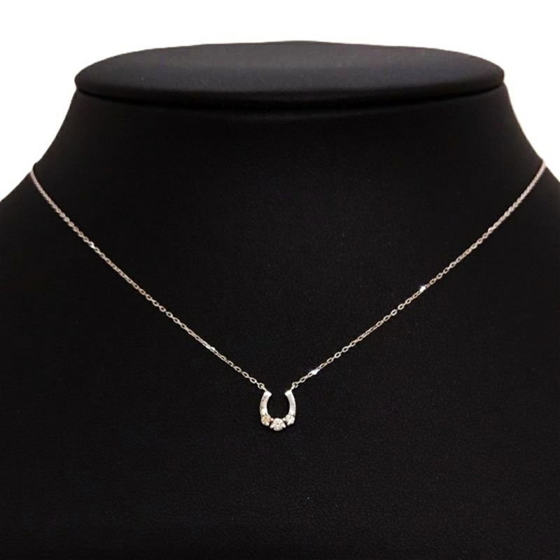 5. スタージュエリー STAR JEWELRY 馬蹄 ホースシュー ネックレス ダイヤモンド 0.03ct K18WG 1.2g 3P【中古】