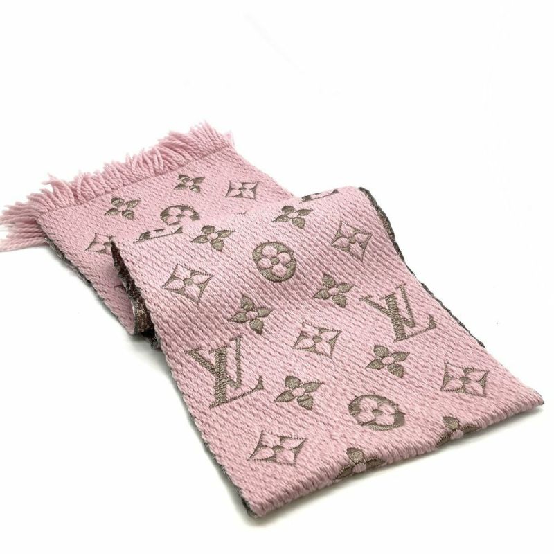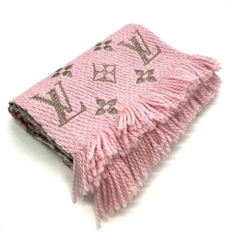 4. ルイヴィトン LOUIS VUITTON エシャルプ ロゴマニア マフラー M70466 ローズバレリーヌ GM1129 シルク混【中古】