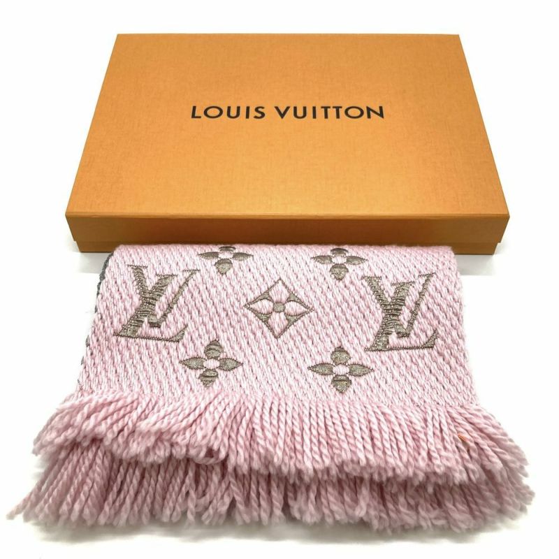 5. ルイヴィトン LOUIS VUITTON エシャルプ ロゴマニア マフラー M70466 ローズバレリーヌ GM1129 シルク混【中古】