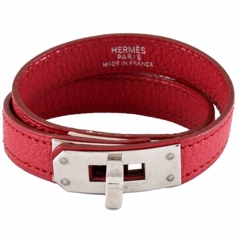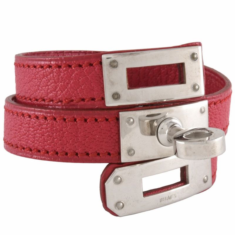 3. エルメス HERMES ケリー ドゥブルトゥール ブレスレット ゴートスキンg □F刻印 レッド シルバー金具 赤系 レディース【中古】