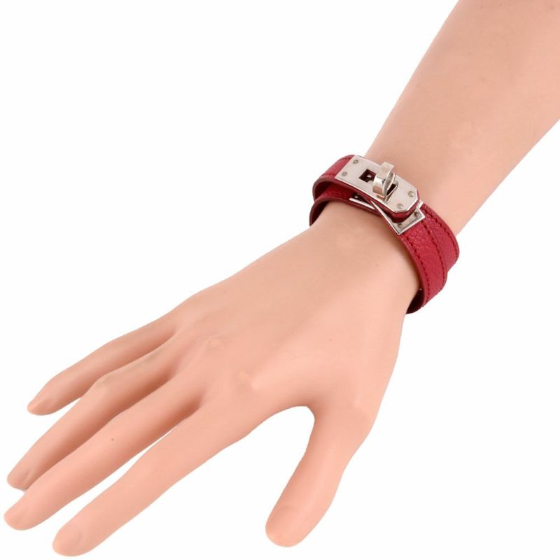 4. エルメス HERMES ケリー ドゥブルトゥール ブレスレット ゴートスキンg □F刻印 レッド シルバー金具 赤系 レディース【中古】