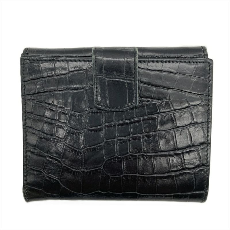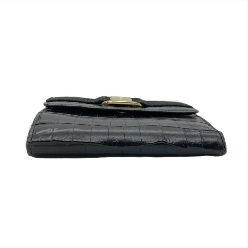 3. フェラガモ Ferragamo ヴァラ 二つ折り財布 レザー 224068 ブラック ゴールド金具 クロコ型押し レディース【中古】