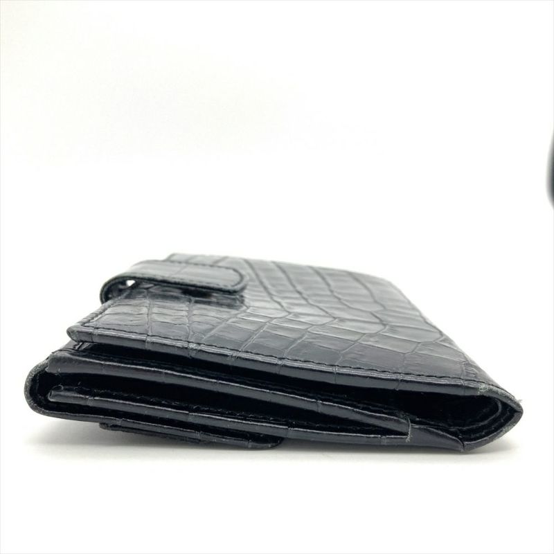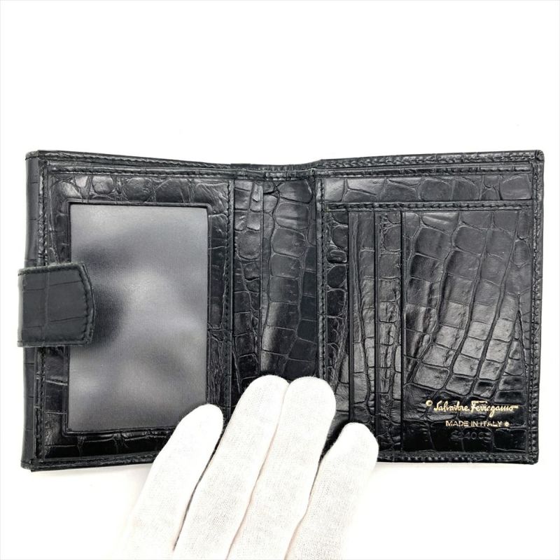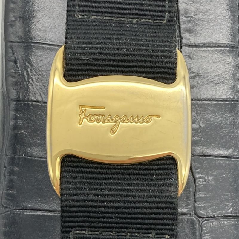 4. フェラガモ Ferragamo ヴァラ 二つ折り財布 レザー 224068 ブラック ゴールド金具 クロコ型押し レディース【中古】