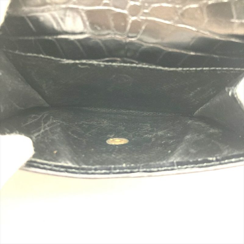 5. フェラガモ Ferragamo ヴァラ 二つ折り財布 レザー 224068 ブラック ゴールド金具 クロコ型押し レディース【中古】