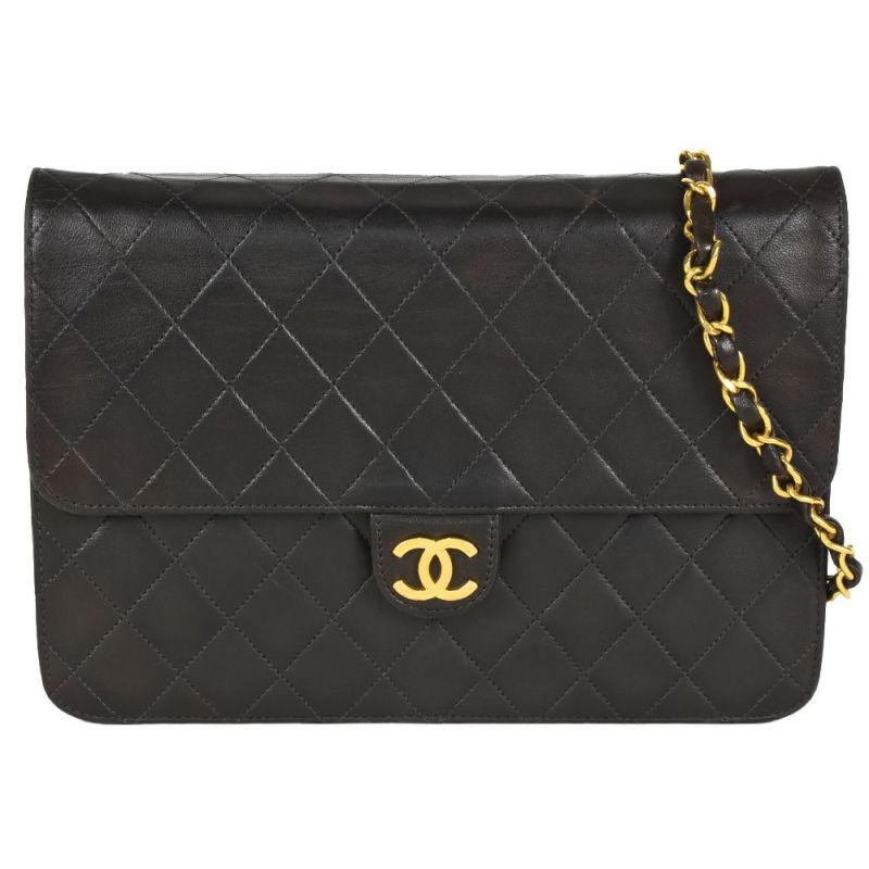 3. シャネル CHANEL マトラッセ シングルフラップ チェーン ショルダーバッグ ラムスキン A03570 ブラック ゴールド金具 レディース【中古】