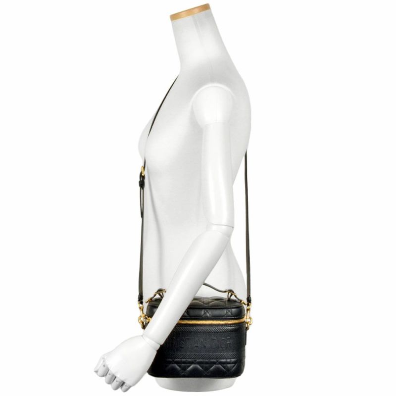 5. ディオール Dior バニティバッグ ショルダーバッグ レザー キャンバス ブラック【中古】